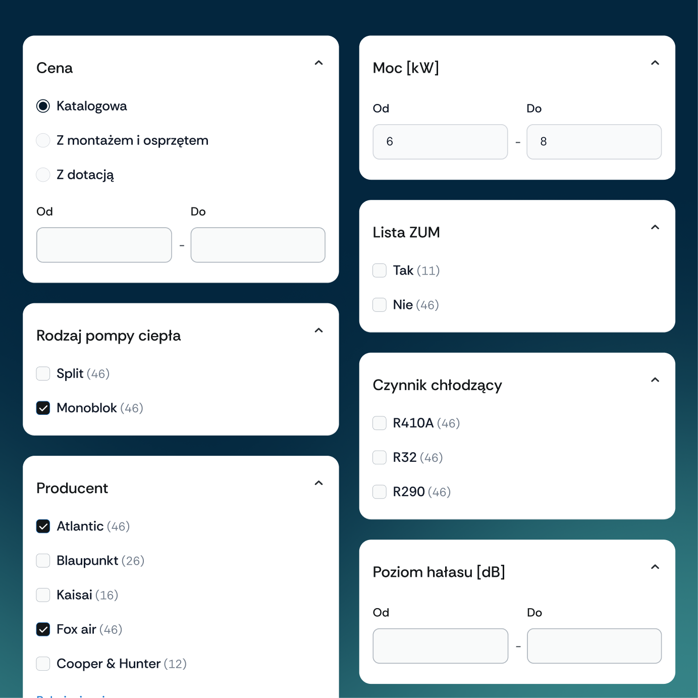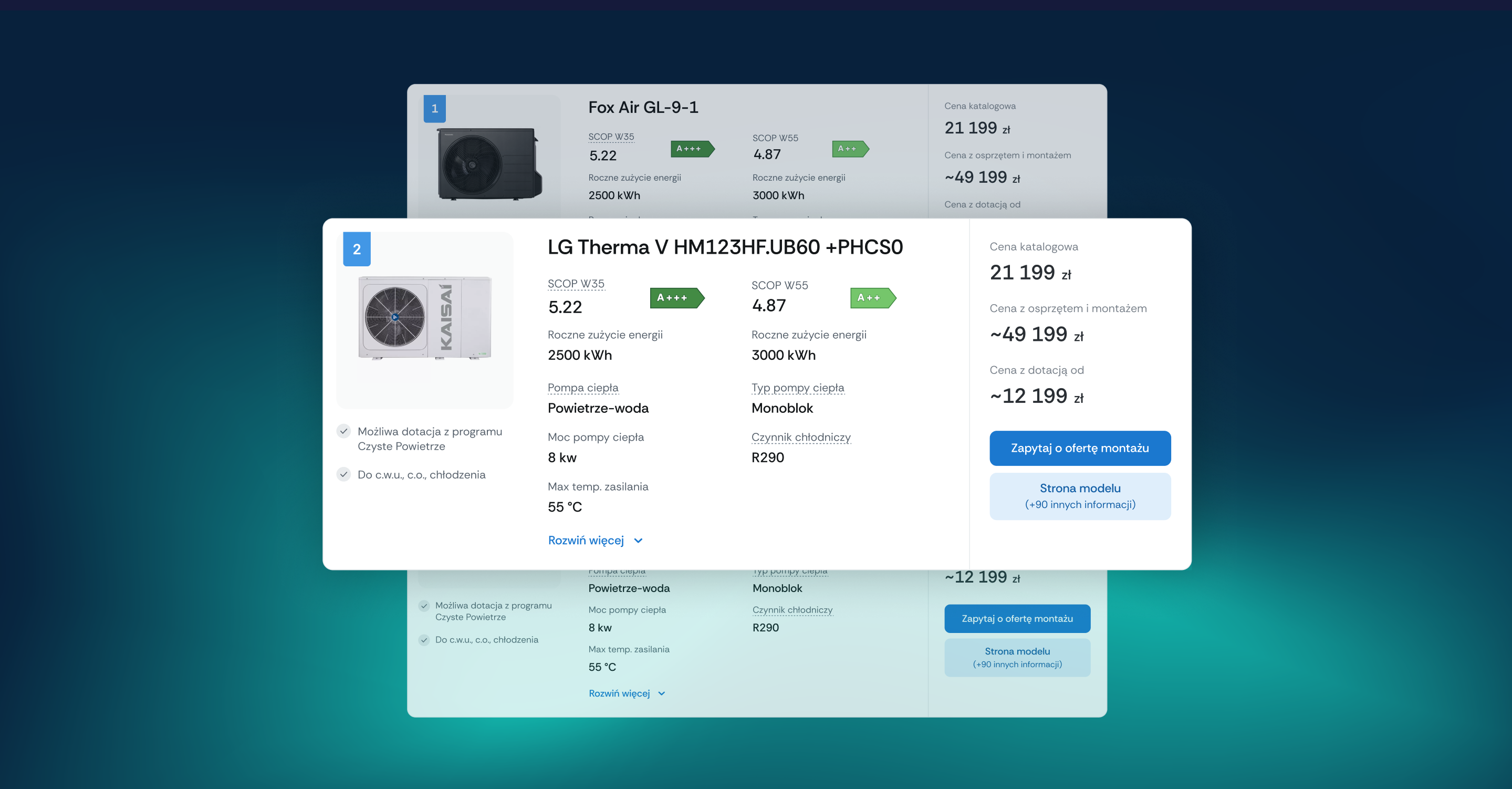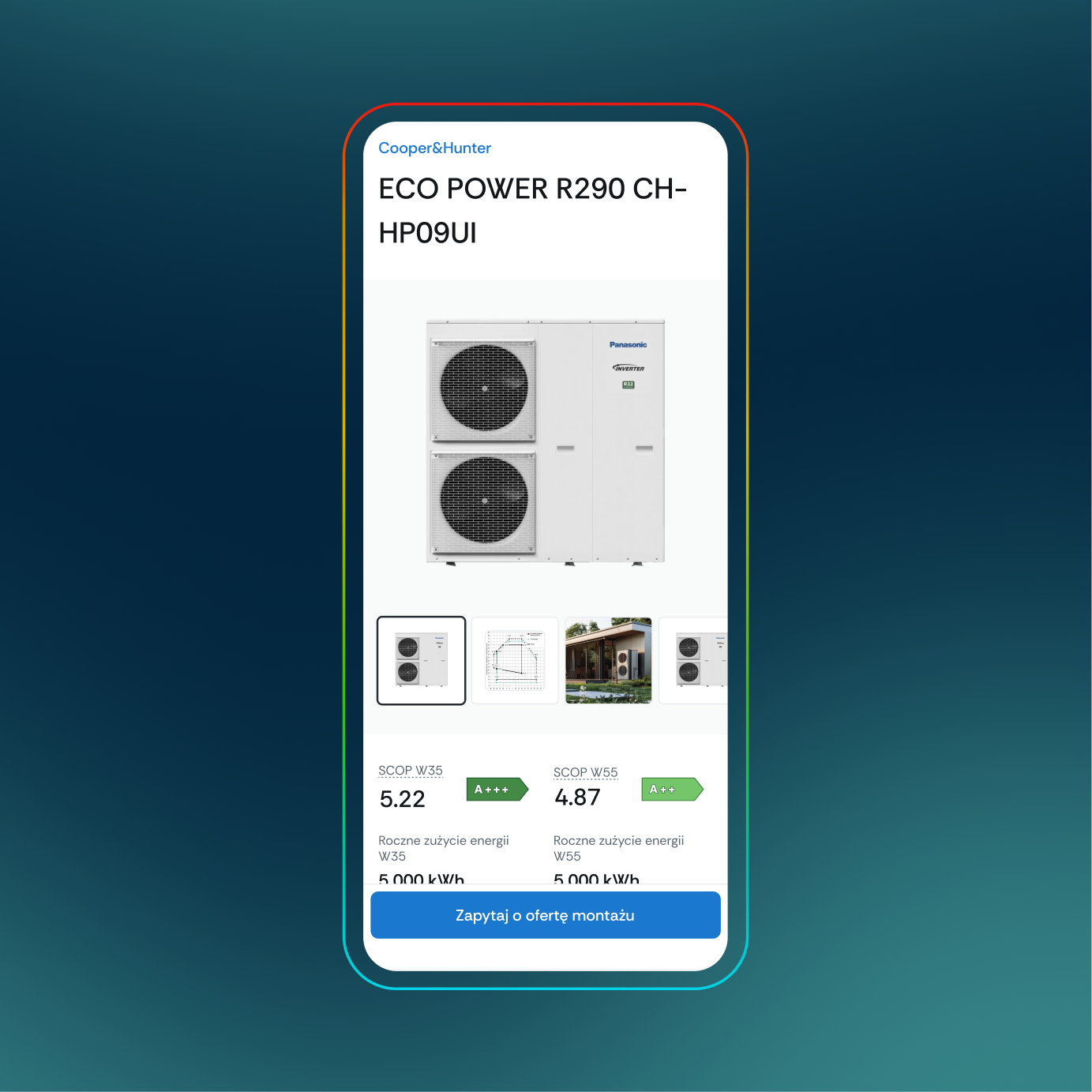 The Pompy.app project was created in response to the fragmented information landscape around heat pumps and the difficulty of independently comparing models. The scope of work included collecting and organizing technical data in one place, as well as designing an experience that simplifies device selection based on key parameters (including COP/SCOP, power output, energy consumption, price, and refrigerant type).