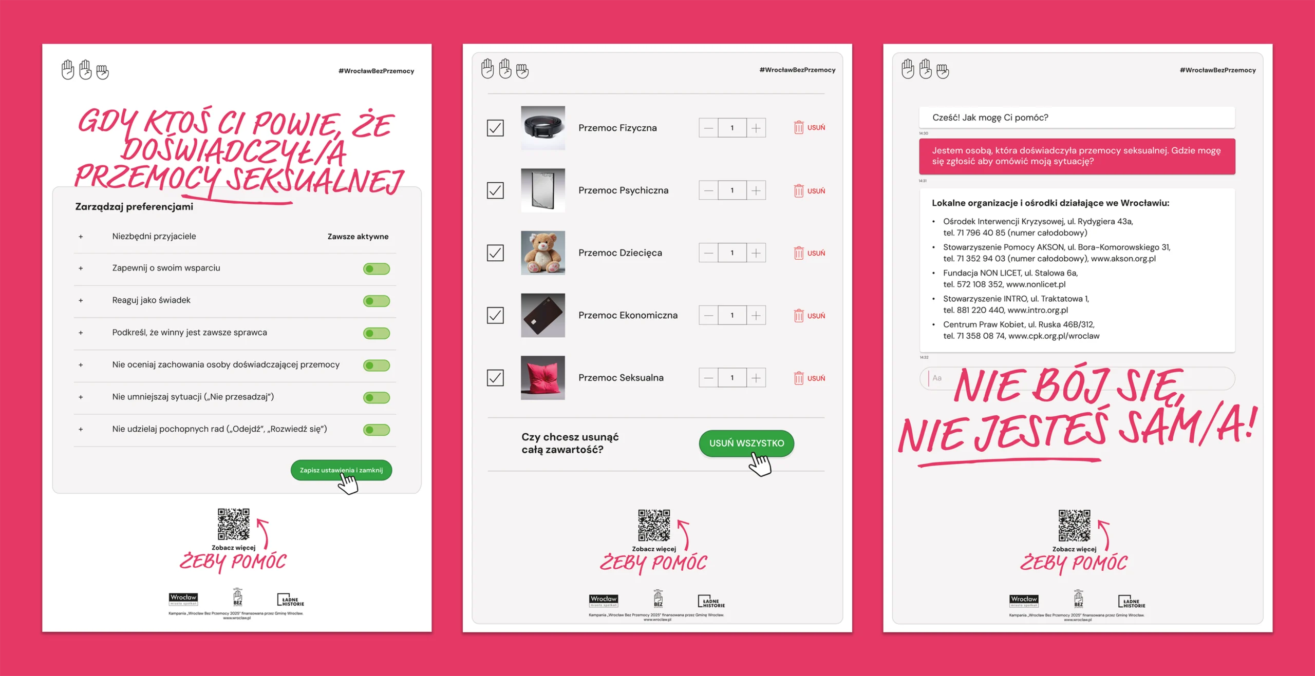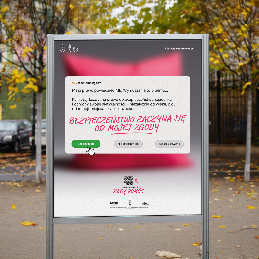 Wrocław Without Violence 2025 – a social campaign addressing people experiencing sexual violence. Our role included graphic design and supporting the organizing team in developing creative concepts and public space...